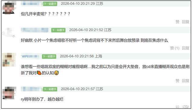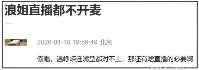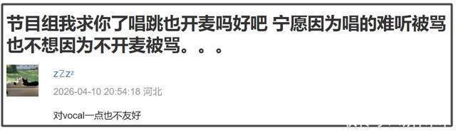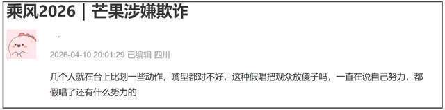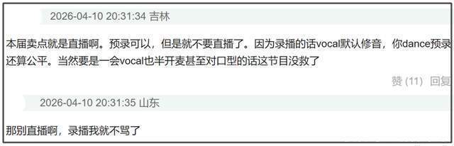 不少观众都表示,《乘风2026》之所以热度很高,就是因为直播,如果想放预录的音频,那就不要直播。又想赚直播的热度,又不全开麦,这不忽悠观众么!